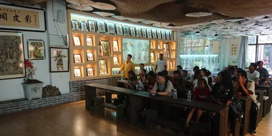 期間,考察團(tuán)在聽取產(chǎn)業(yè)園區(qū)負(fù)責(zé)人對高黎貢文化產(chǎn)業(yè)創(chuàng)意園區(qū)相關(guān)情況匯報后,重點(diǎn)對進(jìn)駐園區(qū)的騰沖非物質(zhì)文化遺產(chǎn)——騰沖翡翠博物館、土陶燒制工藝、手工油紙傘、蕎藝制品、手抄古紙、藤編、手工布鞋及皮影表演制作等進(jìn)行了參觀指導(dǎo)。