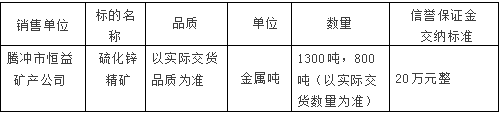 騰沖市恒益礦產(chǎn)品經(jīng)貿(mào)有限責(zé)任公司關(guān)于鋅精礦競價(jià)銷售公告(202001)號