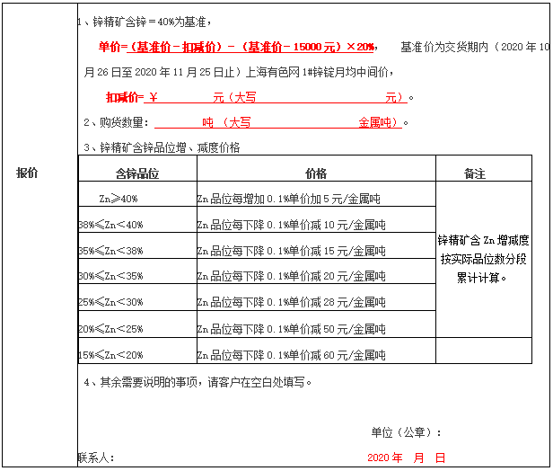 附件:報(bào)價(jià)單、硫化鋅精礦購銷合同