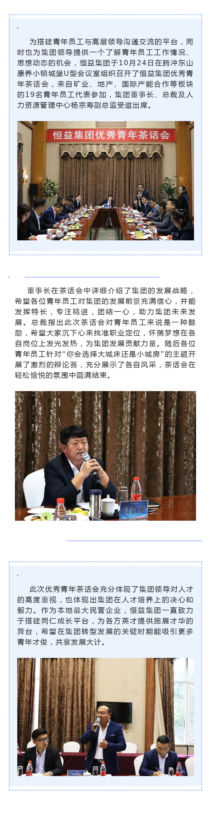 恒益集團優(yōu)秀青年茶話會順利組織 來源: 瀏覽量:7604 日期:2020-10-26 分享到: 上一篇:恒益礦業(yè)公司明光區(qū)域組織全員進行核酸檢測 下一篇:恒益集團組織召開人才盤點大會