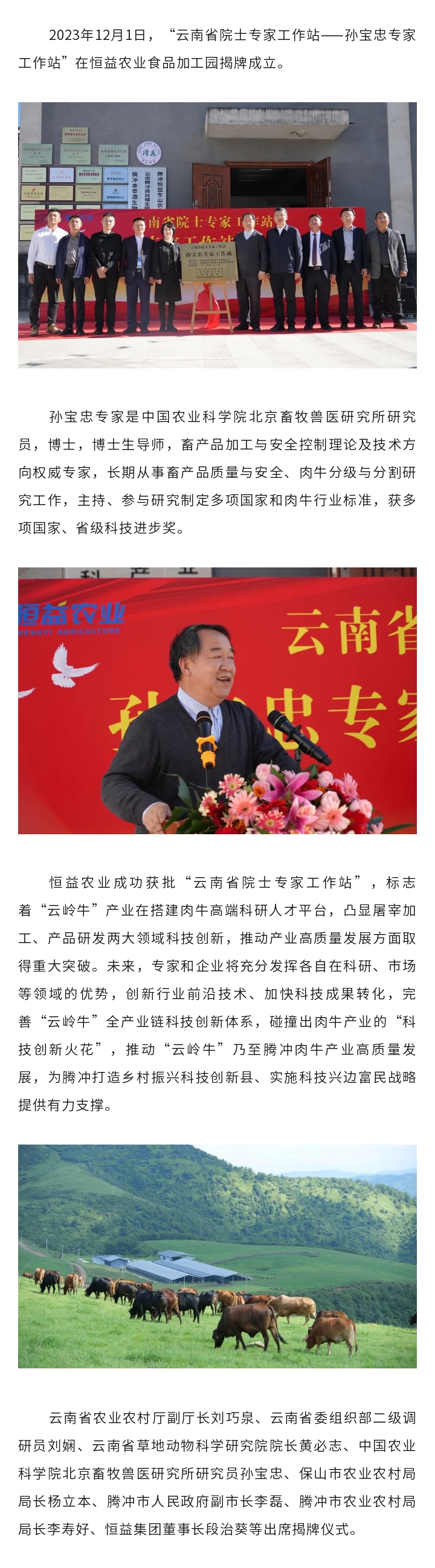 “云南省院士專家工作站——孫寶忠專家工作站”在恒益農(nóng)業(yè)揭牌 來源: 瀏覽量:3796 日期:2023-12-02 分享到: 上一篇:2023騰沖科學(xué)家論壇·溫泉醫(yī)康養(yǎng)產(chǎn)業(yè)發(fā)展論壇在騰沖恒益東湖溫泉健康管理中心成功舉辦 下一篇:大咖來了丨2023騰沖科學(xué)家論壇·大健康產(chǎn)業(yè)創(chuàng)新發(fā)展活動院士導(dǎo)覽