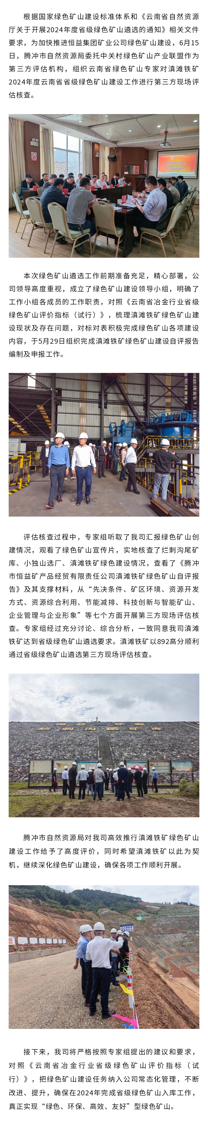 恒益滇灘鐵礦順利通過省級綠色礦山遴選第三方現場評估核查 來源: 瀏覽量:3865 日期:2024-06-17 分享到: 上一篇:恒益集團、云溫院、臺灣醫(yī)療財團法人國際醫(yī)學科學研究基金會簽署三方戰(zhàn)略合作框架協(xié)議 下一篇:恒益集團組織開展采購招標管理培訓