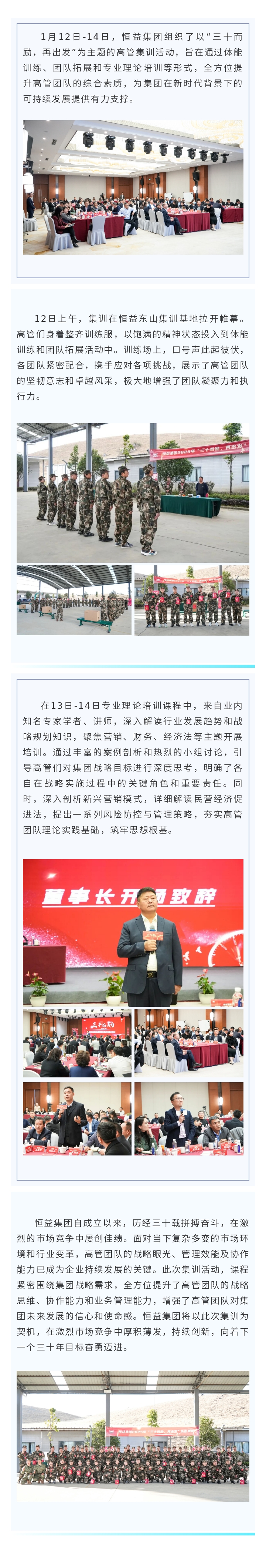 “三十而勵(lì),再出發(fā)”——恒益集團(tuán)高管集訓(xùn)順利舉行 來源: 瀏覽量:2892 日期:2025-01-14 分享到: 上一篇:拓市場,強(qiáng)管理,增效益,高質(zhì)量發(fā)展——恒益集團(tuán)組織召開第三屆董事會第二次會議暨2024年度工作會議 下一篇:升級了升級了,騰沖東山草原景區(qū)獲評國家AAAA級旅游景區(qū)