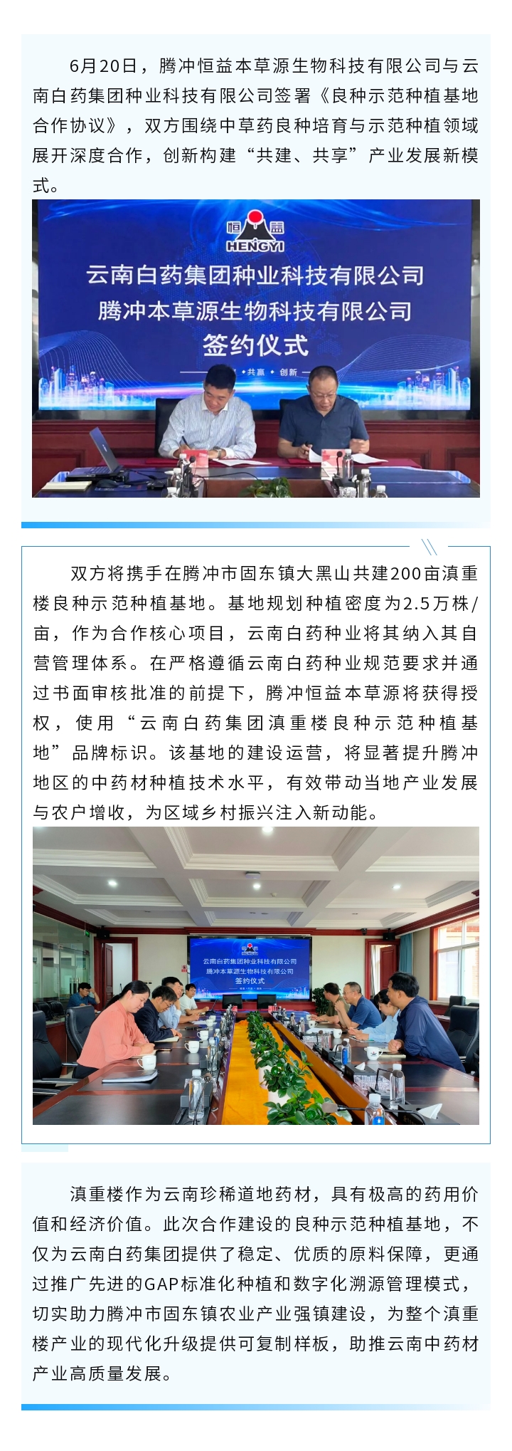 恒益本草源與云南白藥種業(yè)簽署合作協(xié)議 來(lái)源: 瀏覽量:1332 日期:2025-06-20 分享到: 上一篇:會(huì)聚良緣 情定東山丨是我和你關(guān)于相遇的童話 下一篇:恒益溫泉醫(yī)康養(yǎng)與您相約南博會(huì),共筑健康中國(guó)夢(mèng)