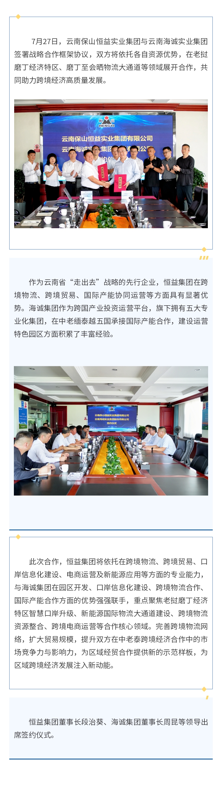 恒益集團(tuán)攜手海誠集團(tuán) 共拓跨境合作新藍(lán)圖 來源: 瀏覽量:243 日期:2025-07-28 分享到: 上一篇:流量網(wǎng)紅速來集合!騰沖東山草原福利就位,就等你解鎖草原新視界 下一篇:恒益恒源:三十載匠心,慢釀歲月醇香