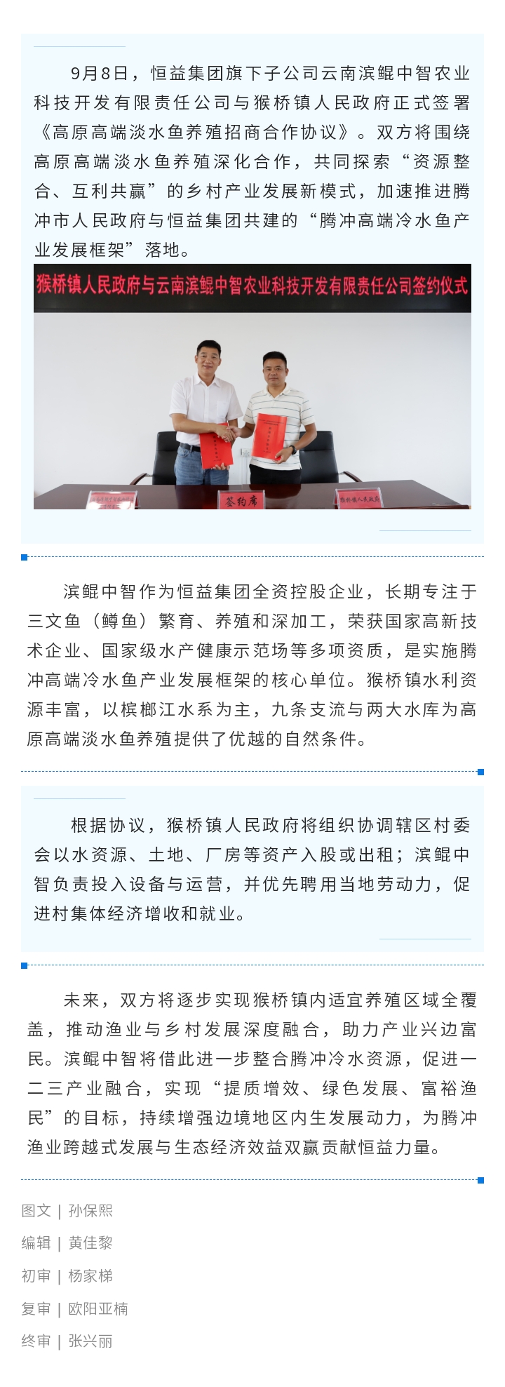 恒益集團濱鯤中智與猴橋鎮(zhèn)簽約 共筑高原高端淡水魚養(yǎng)殖基地 來源: 瀏覽量:690 日期:2025-09-08 分享到: 上一篇:喜訊丨恒益集團榮膺2025年“騰沖市教育事業(yè)高質量發(fā)展先進集體”稱號 下一篇:銘記榮光,凝聚力量丨恒益集團組織集中收看抗戰(zhàn)勝利80周年閱兵盛況