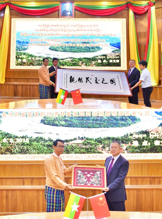 為積極融入“一帶一路”倡議和孟中印緬經(jīng)濟(jì)走廊、中緬經(jīng)濟(jì)走廊建設(shè),充分發(fā)揮多年來中緬兩國(guó)的友好交流關(guān)系及騰沖與克欽邦山水相連、人文相通優(yōu)勢(shì),騰沖恒榮投資公司經(jīng)過與克欽邦政府友好協(xié)商,受克欽邦政府邀請(qǐng),于2018年5月8日,在保山市杜春強(qiáng)副市長(zhǎng)、克欽邦政府代表財(cái)政、稅收、計(jì)劃與經(jīng)濟(jì)部長(zhǎng)吳偉林共同見證下,隆重舉行合作開發(fā)密支那經(jīng)濟(jì)開發(fā)區(qū)項(xiàng)目諒解備忘錄簽署儀式。