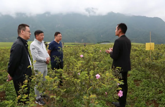 6月3日,調(diào)研組一行在恒益集團(tuán)總裁彭良波、董事朱旭東及相關(guān)高管的陪同下,對恒益大馬士革玫瑰項目進(jìn)行實地調(diào)研參觀,先后到達(dá)了大馬士革玫瑰明光種植基地、玫瑰觀光莊園、固東玫瑰品種資源科普基地、玫瑰臨時加工車間。期間,露絲福公司總經(jīng)理彭文濤就大馬士革玫瑰項目建設(shè)情況、下步發(fā)展定位及產(chǎn)業(yè)規(guī)劃作了詳細(xì)匯報。針對產(chǎn)業(yè)下步發(fā)展方向、產(chǎn)品開發(fā)、一二三產(chǎn)業(yè)融合等,羅軍書記與彭良波總裁、彭文濤總經(jīng)理進(jìn)行了深入溝通。同時,彭良波總裁就玫瑰項目所帶來的精準(zhǔn)扶貧、農(nóng)民增收、經(jīng)濟(jì)效益方面也作了深入分析。
